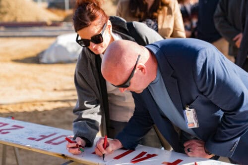 Stakeholders were invited to sign the final structural truss before it was permanently installed, leaving a lasting mark on a facility which will serve the community for generations.