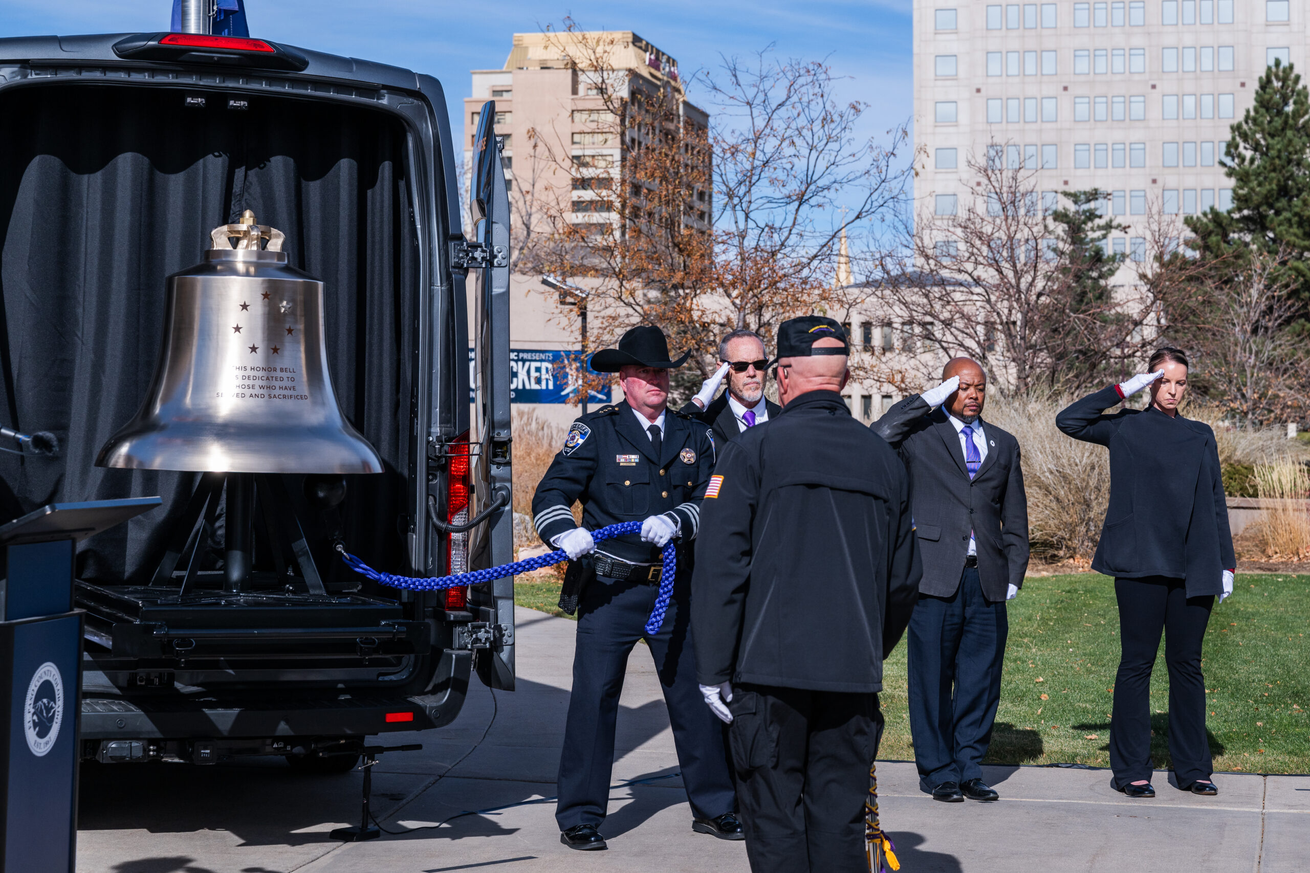 The event featured remarks from elected officials, representatives from the Honor Bell Foundation, and community members, followed by the tolling of the Pikes Peak Honor Bell to honor our fallen heroes.